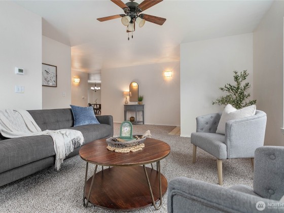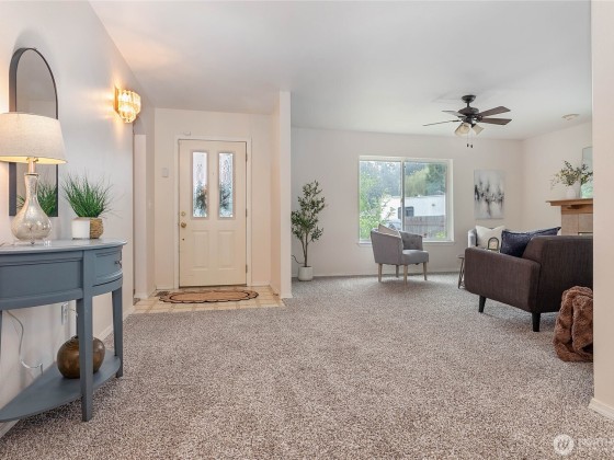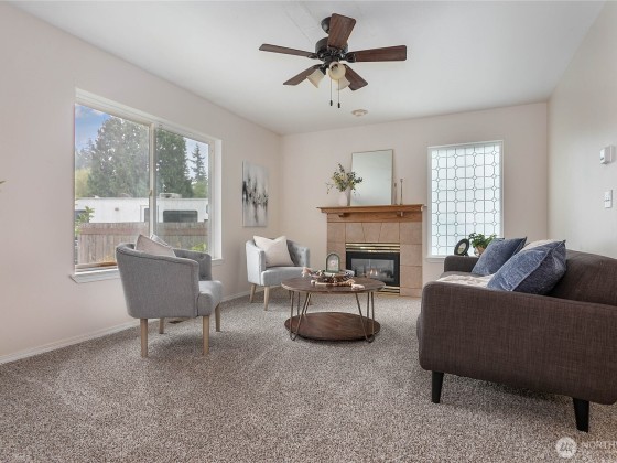 Great starter, investment or vaca one story rambler w/2 car attached garage & great layout minutes from beautiful Birch Bay and/or Semiahmoo. Nice open entry, spacious living room w/cozy gas fireplace, brand new carpet throughout & fresh paint welcome you. Great size kitchen w/newer fridge & large walk-in pantry open to dining room w/updated lighting. Owner's suite w/ensuite 3/4 bath is located on opposite side of home from 2 more bedrooms. Guest bath w/step-in jacuzzi tub offers daily relaxation. Large deck off dining offers perfect spot to sit & enjoy your partially treed backyard views. Located on extra-large lot in quiet cul-de-sac w/2 sheds in Richmond park just minutes from the beach.