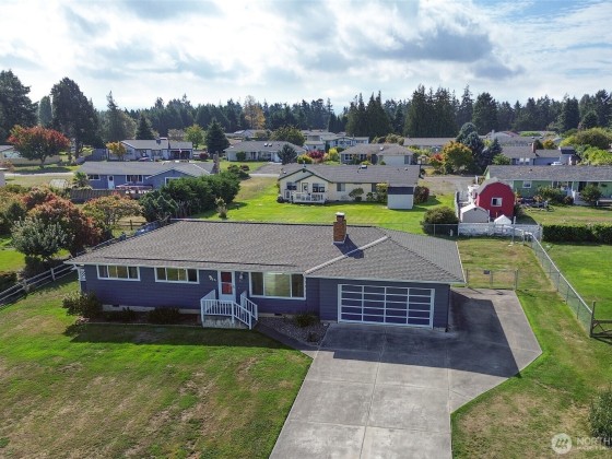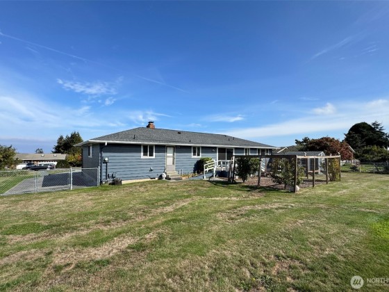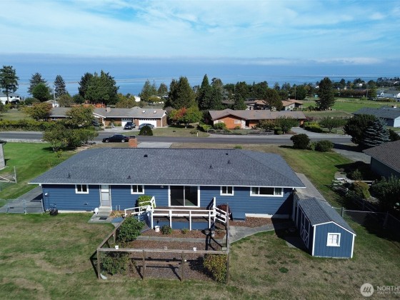 One level home, with a newly painted exterior, & new flooring throughout. Enjoy views of the Strait, the Dungeness Lighthouse, Cline Spit, and the Olympic Mountains. This 3 bedroom, 2 bath, home in Mains Farm is a rare find. Large living area with cozy wood stove, light and bright with big windows, tons of storage space, and dual entry via the garage, one ramp and one with steps. A fully fenced back yard with wood deck and deer-fenced garden area to soak in the southern exposure. Large exterior wood shed and an additional stand alone storage shed. Irrigation water for outside watering. Exceptional walking neighborhood, with access to the community waterfront lot.