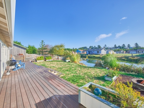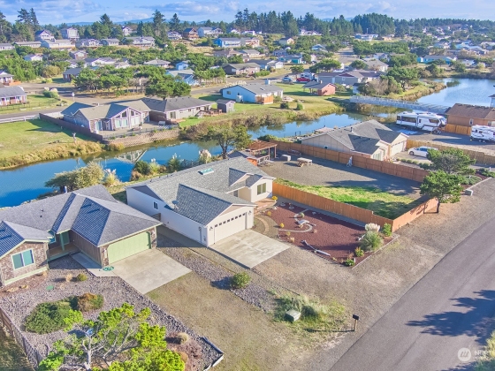 NEW PRICE!! Seabreeze Lake Gem Just Steps from the Beach! Built in 2020, this beautifully maintained home offers 60’ of lakefront access right in your backyard—perfect for enjoying wildlife and breathtaking Pacific sunsets. Inside, fresh interior paint, new carpet, and custom window coverings enhance the light-filled, open layout. The spacious kitchen features a large butcher block island, ideal for gatherings. The split floor plan includes a private primary suite, a second bedroom, and a versatile bonus room facing the water, perfect as a 3rd bedroom, office, or den. Enjoy easy-care landscaping, a large utility/mud room, plenty of storage, and expansive composite decks front and back for enjoying the fresh ocean air. Move-in ready!
