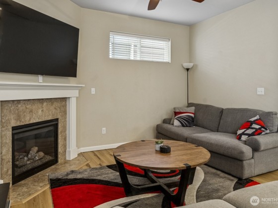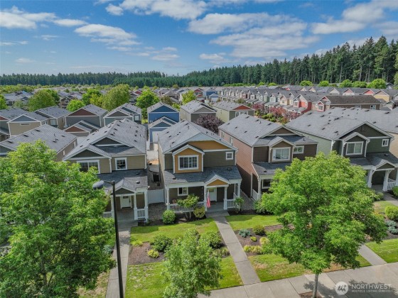 Welcome home! Hard surface flooring throughout the open concept main level living space, with gas fireplace in the Living rm & an island counter with eating bar in the Kitchen w/stainless appliances, granite counters, & walk-in pantry. Upstairs hosts three bedrooms including Primary Suite w/private bth & walk-in closet. The perfect postage stamp lot! HOA maintains the front lawn and landscaping, while you get to enjoy your private, fully fenced patio space (with a wee grass for Fido), ready for summertime grilling. Fabulous location with all amenities at your fingertips: just one street over from Glacier Park, offering park space, sports court, and playground. Moments to Hawks Prairie Golf Course, dining & shopping, and only 15mins to JBLM.