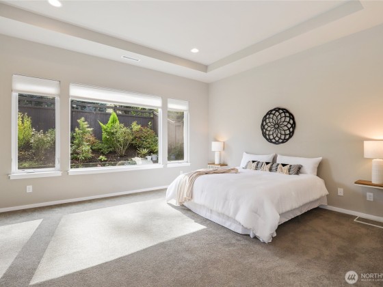 This stunning single-level home in McCormick Woods offers luxury living with high-end finishes throughout. A versatile den/study easily serves as a third bedroom. The open-concept kitchen flows into a light-filled living room with floor-to-ceiling windows, fireplace, and access to a covered deck with its own fireplace. A walk-in butler’s pantry with sink and ample storage enhances functionality. The split-bedroom layout ensures privacy, with a serene primary suite featuring a spa-like bath, dual vanity, soaker tub, tiled shower, and walk-in closet. The second bedroom includes its own ensuite. Enjoy community parks, trails, tennis, pickleball, basketball, and golf. Mortgage savings may be available for buyers of this listing.