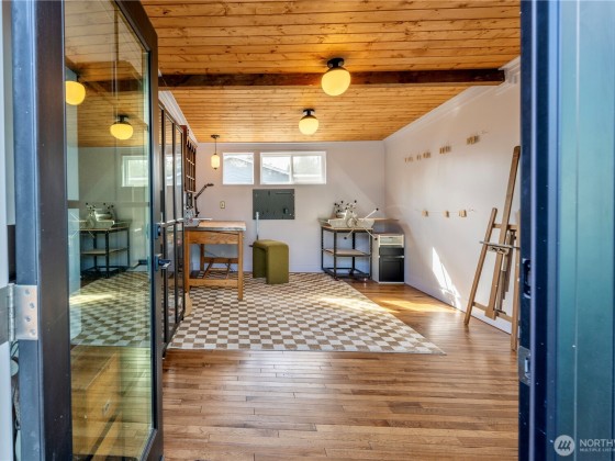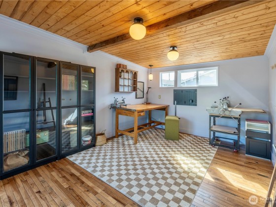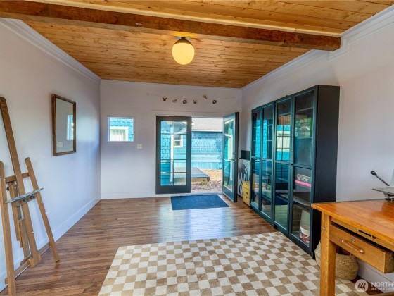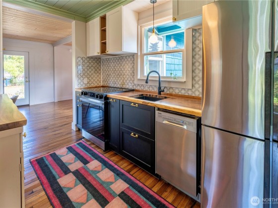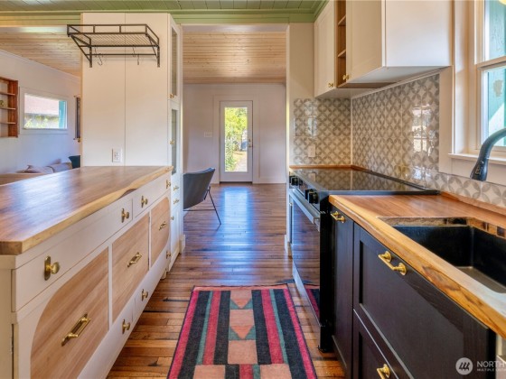 Vintage home w/stylish updates & detached studio work-room in fantastic Port Angeles neighborhood. This one-bedroom + office has been remodeled, top to bottom, w/all new flooring (solid hickory flooring has vintage look), interior/exterior paint, remodeled kitchen & bath, new light fixtures, & more. All new appliances, including all-in-one washer/dryer. Owner is an artist & created a detached studio. Work from home? Great office/creative space! Insulation blown in the walls & ceiling will keep you warm & plumbing has been updated to pex. Detached carport/studio/storage is super-handy. The home sits towards the back of the lot creating a sense of privacy- the yard is fully fenced w/cherry & peach trees. GREAT starter home w/room to grow!