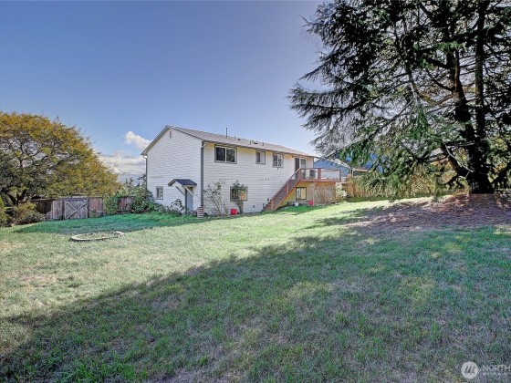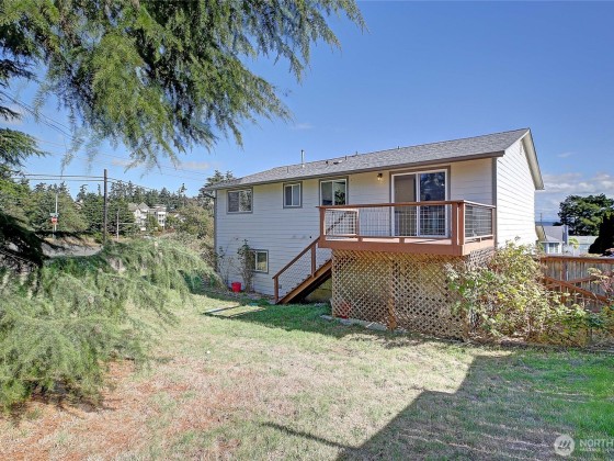 Welcome to this spacious, updated home on a large corner lot just minutes from downtown Oak Harbor, NAS Whidbey, and local amenities. Enjoy peekaboo views of Oak Harbor from the bright, oversized Living Room. The interior feels fresh & inviting with new paint, painted trim & cabinets, lighting, and flooring throughout. The Kitchen features newer appliances, a large Pantry, Dining area and a slider leading to a generous deck, perfect for entertaining and overlooking the fully fenced backyard. The flexible layout offers a main-level or upstairs Primary Bedroom both w/ Ensuite Baths. Tons of storage. Attached 2 car Garage. Originally a split-level, it's now a two-story home full of potential in a desirable neighborhood and convenient location.