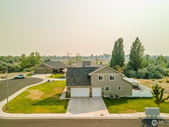 Beautiful custom home located in Cove West. This 4 bedroom 2.5 bath home features an open floor plan that's perfect for entertaining. It has beautiful hardwood floors, a formal living room or den/office, a formal dining room, a spacious kitchen off the great room with granite countertops, a walk-in pantry, and a butler's pantry. A large primary suite on the main floor includes a 5-piece bath ( jetted tub, shower, and walk-in closet). There's a theatre/bonus room with a wet bar upstairs, & 3 bedrooms, and a full bath. The fully vinyl-fenced backyard has a pergola & gates on both ends. You'll also enjoy access to the lakefront park, boat launch, and a playground just across the street in the cul-de-sac. It's perfect! Come see it now!