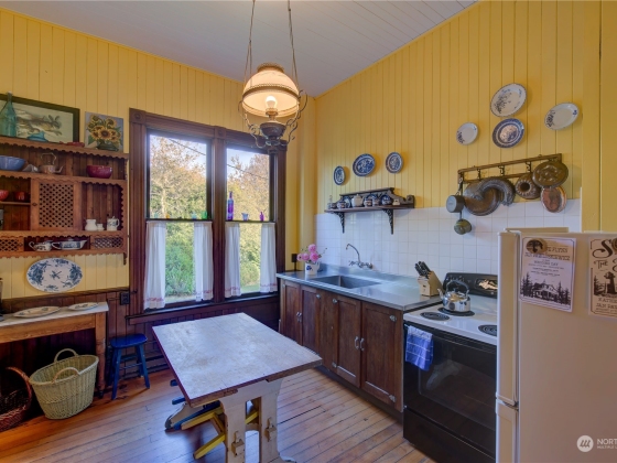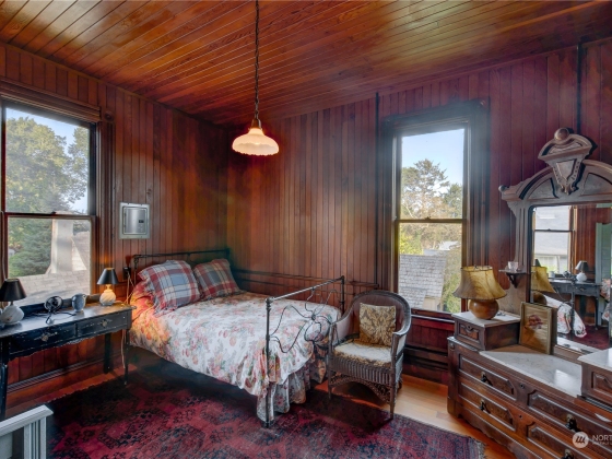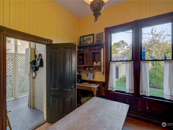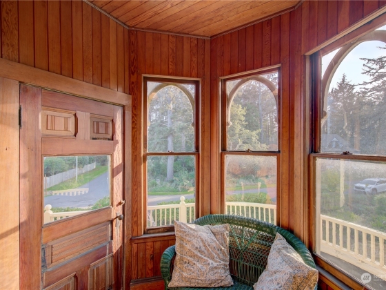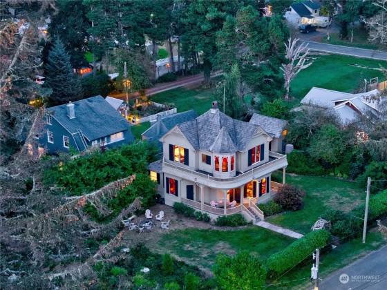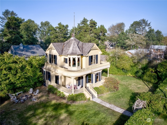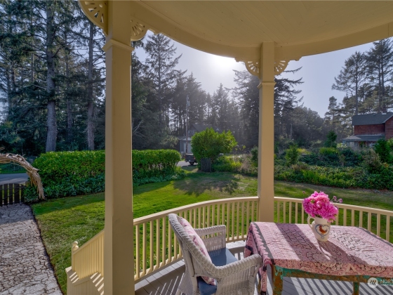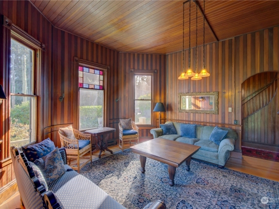 The “Jewel of Seaview”is an elegant example of “Picturesque”. A design movement that combines the pictorial value and importance of creative architecture and the charm of a rustic landscape. Built in 1888 it’s extensive use of old growth redwood and cedar on the interior and a variety of shingle styles on the exterior , along with a viewing turret, many doors leading to enjoying the ocean air, rustic views and garden, propelled it to become a National Historic Landmark. In 2001 it began a true restoration as the current owners reclaimed the falling treasure by recreating the foundation, the plumbing, electrical and heat, and exterior while still maintaining the historic structure and design. The home is sold with original antique furniture.