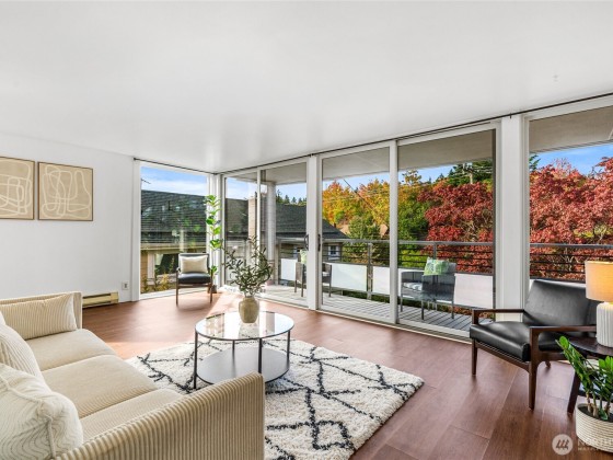 Live in Seattle's best neighborhood! Restaurants, shops, parks and the lake just minutes walk from your doorstep. This top floor condo gives you privacy and abundant natural light, a peaceful outlook to the gardens and treetops. The floorplan is efficiently laid out with flowing entry, kitchen, dining area and living room all oriented to a generous covered deck. Inside renovations include, new flooring, fixtures, appliances and paint and systems. A recent extensive building remodel has made the building envelope like new. Enjoy the central location, easy transit options and small town atmosphere.