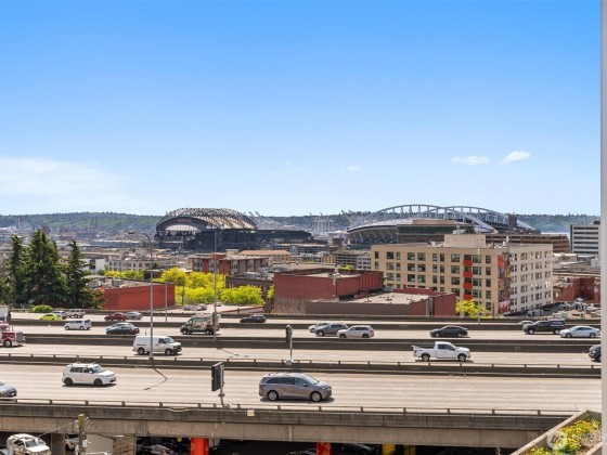 Live in the heart of it all! This top-floor 1BR + den/office condo at Pacific Center boasts an amazing Walk Score of 98 and Transit Score of 100, plus sweeping city and stadium views. Sun-filled south facing windows light up the open floor plan featuring newer appliances, a full bath, in-unit washer/dryer, secure gated parking, and a 4'x4' storage unit. Step out to dining, retail shops, and the Yesler Hillclimb—right outside your door! Near Lumen Field, T-Mobile Park, Pioneer Square, and downtown. Pet-friendly, no rental cap, HOA covers water, sewer, and garbage. Secure building with Amazon lockers, gated entry, and more. Amazing access to public transit including the train, busses & sound transit. Don’t miss it!