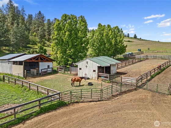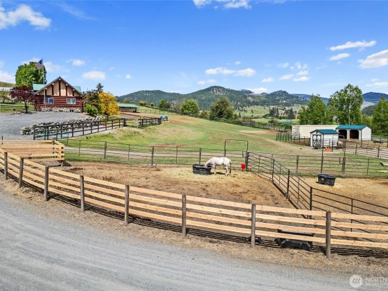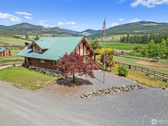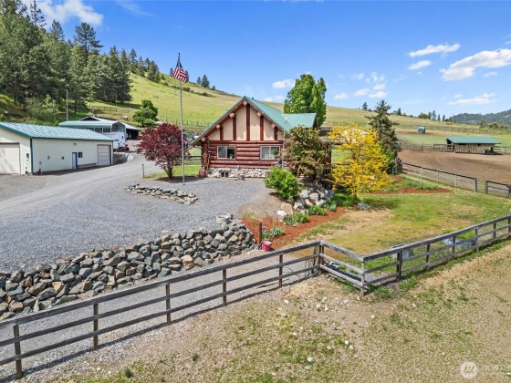 A true country retreat! The 79 acres with a tamarack log home provides a perfect blend of rustic charm and modern amenities with beautiful countryside views. The 2380 sq. ft. log home with three bedrooms and three bathrooms provides a comfortable space to live and entertain. The vaulted ceilings add an expansive feel. Having end-of-road privacy and access to abundant water for livestock and gardening adds a practical and peaceful element to the property. The shop, carport, machine shed, and fruit trees are great bonuses, giving plenty of room for hobbies, work, or further expansion. The fully fenced property is perfect for keeping animals secure, especially for horses. Come make your dream of owning a log home on acreage a reality.