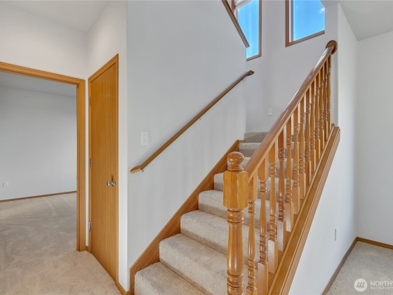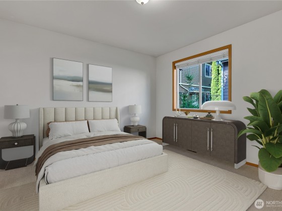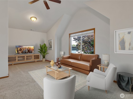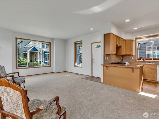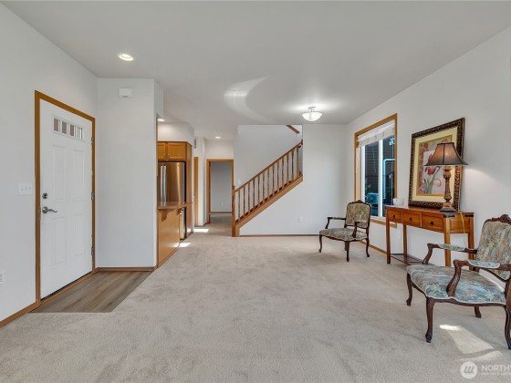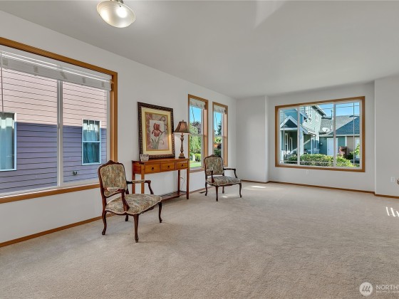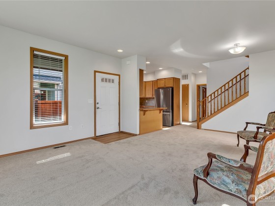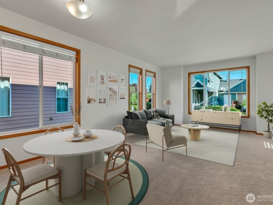 Welcome to this darling, move-in ready 1,762 SF, 3 bed, 2.5 bath home in the heart of charming downtown Enumclaw! This standalone 2-story lives like a single-family home with all the conveniences of condo living. Light-filled open concept layout features extra-tall ceilings, NEW carpet & fresh interior paint. Spacious living area flows into an efficient kitchen with ALL NEW stainless-steel appliances & adjacent dining space. Main floor primary suite offers walk-in closet & 5-piece bath with soaking tub. Upstairs includes 2 additional bedrooms, large bonus room (4th bed potential), full bath & laundry room with cabinet storage & utility sink. Includes 2 assigned parking spaces. Low-maintenance living in a prime location—this is a must-see!