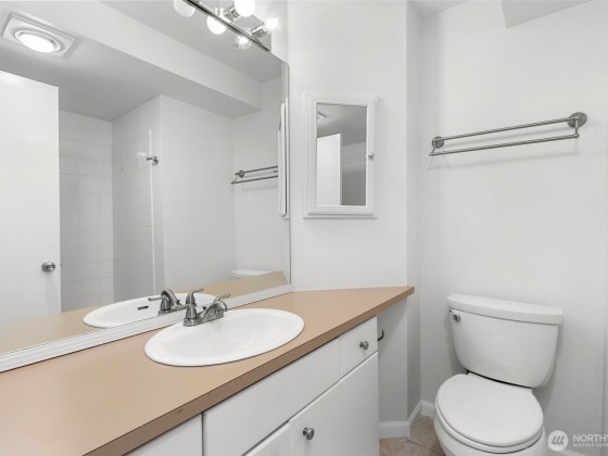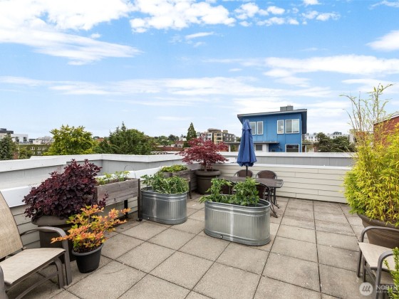 This stylish 2-bedroom, 2-bath end-unit condo in the heart of Capitol Hill offers 796 sq ft of smartly designed living. The kitchen was remodeled in 2017 with modern cabinetry, stainless steel appliances, and a breakfast bar that opens to a bright living area with laminate floors and large windows. Enjoy a private balcony, spacious primary suite with walk-in closet, in-unit laundry, two garage parking spaces, and a storage locker. The building features a rooftop deck with stunning city and Puget Sound views. With a 97 Walk Score, you're steps from light rail, shops, dining, and more. Seller will pay off the remaining special assessment balance at closing for stress free condo living.