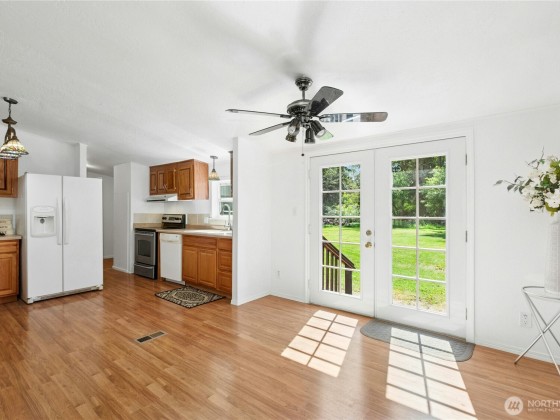 Move-in ready 3-bedroom, 2-bath home on 2.5 beautiful acres near NAS Whidbey & Deception Pass! Features include vaulted ceilings, a cozy pellet stove, and French doors off the dining room opening to a private backyard. The spacious primary suite offers a huge bath with tiled shower, oversized tub, and dual closets. Updated 2nd bath with tile. Outside you'll find a 28’x30’ double-bay shop, RV parking, and a versatile detached “catio” that can be used as a dog run, chicken coop, or greenhouse. Heating via furnace or pellet stove. New roof installed 4/11/25. Peaceful living with room to roam and plenty of convenience!