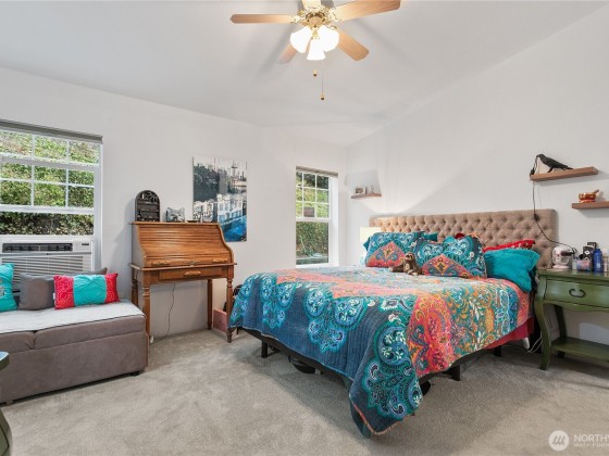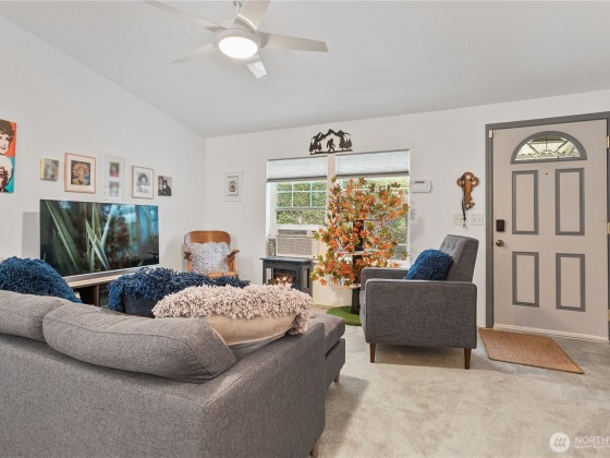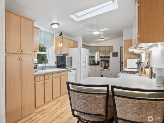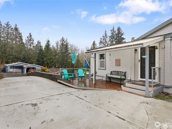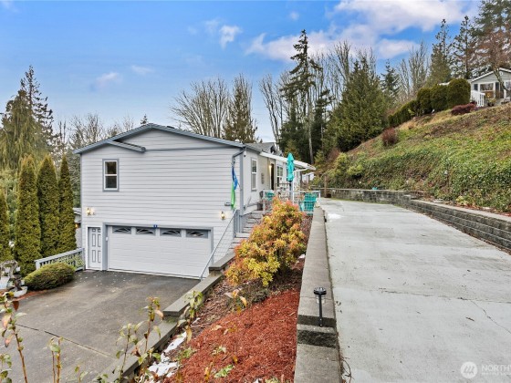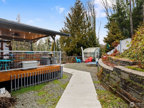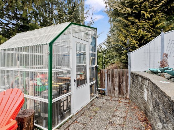 Peaceful living awaits in Lake Padden Estates, a desirable 55+ community with rare land ownership! This immaculate home sits on two spacious lots and offers 3 bedrooms, an office, and 2.75 bathrooms—perfect for comfort and flexibility. The primary suite features a newly remodeled ensuite with a walk-in shower, new tub, and laminate wood flooring. The kitchen has updated flooring, and fixtures have been modernized throughout. Enjoy the outdoors with a covered deck, lush garden, and private greenhouse. The two-car garage includes a 234 sq. ft. finished studio with a fridge and ¾ bath—ideal for guests, hobbies, or a home office. A second driveway offers extra parking and front-door access. Schedule your showing today!