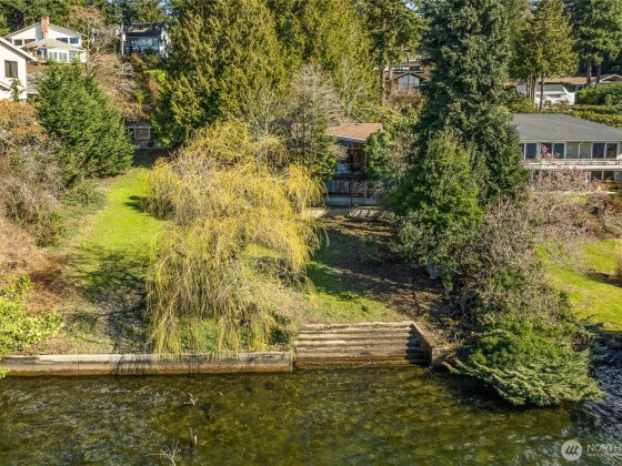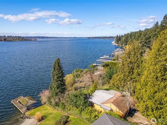 Imagine 110 feet of west-facing waterfront, captivating sunsets, and vistas of the city skyline backdropped by the Olympic Mountains. Design your lakefront legacy on one of Lake Washington’s most coveted shorelines. Situated at the end of a quiet lane in the heart of Bellevue’s Enatai neighborhood, this nearly 1/2-acre property presents unparalleled privacy and tranquility. A rare concrete bulkhead with stairs descending to the water complements the existing mid-century house, a future steward as you create your signature waterfront estate. Fabulous location near top-rated schools, amenities, and parks, just minutes to Downtown Bellevue, and commutes in all directions. An uncommon opportunity to build waterfront luxury and lifestyle dreams.