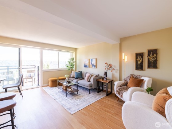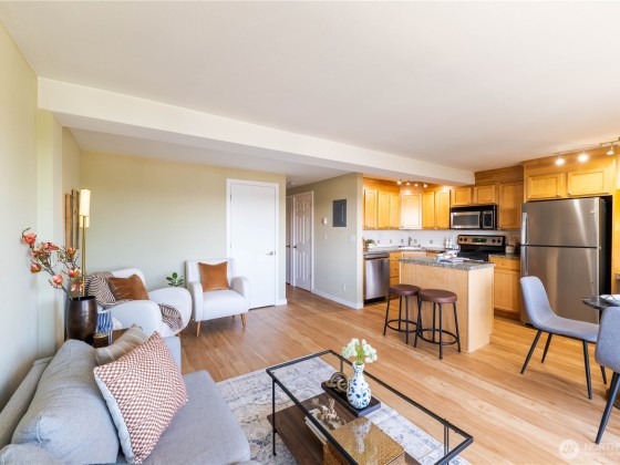 Spectacular views abound in this light filled 2 bedroom, 1 bath Seattle condo! 5th floor of the well-maintained Taylor building, sip your coffee on your deck while you take in the views of Queen Anne, Lake Union, downtown Seattle, and the Cascade Mountain range! This is a really great location, close to many employers, restaurants and night life. Nearby Fremont and Ballard and all kinds of recreation are very near. Go Kayaking on Lake Union, enjoy Queen Anne, and the whole South Lake Union Area. Storage Unit included. Deep parking space in common garage can fit 2 small cars in a row Newer roof and exterior of building. NO RENTAL CAP!