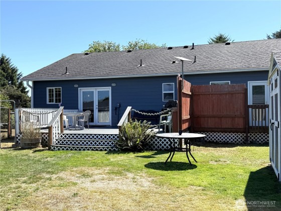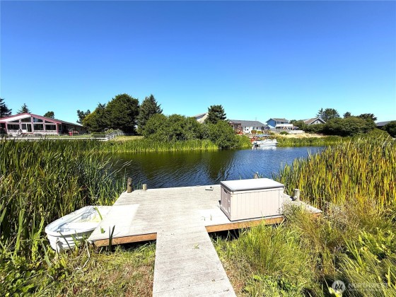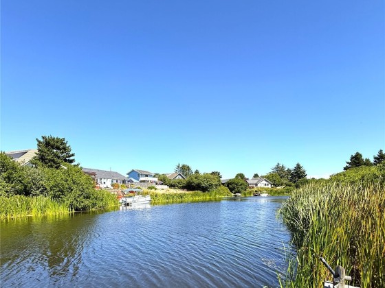 Waterfront Retreat on the Bell Canal This spacious 2-bedroom, 2-bath home is ideally located on the Bell Canal, just a short walk to the beach. Step inside to a beautiful tiled entryway that opens to an inviting open-concept living space, where stunning canal views from the kitchen, dining area, and primary suite .A mix of wood and tile flooring adds warmth and character throughout. The luxury-sized primary bedroom offers a serene escape with its expansive en-suite bath featuring a jetted soaking tub.Outdoors, enjoy a fully fenced backyard with a large deck spanning three-quarters of the back of the home, complete with steps leading directly to the canal. Additional features include a single-car garage, & irrigation from the canal