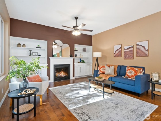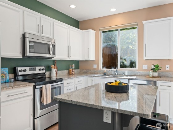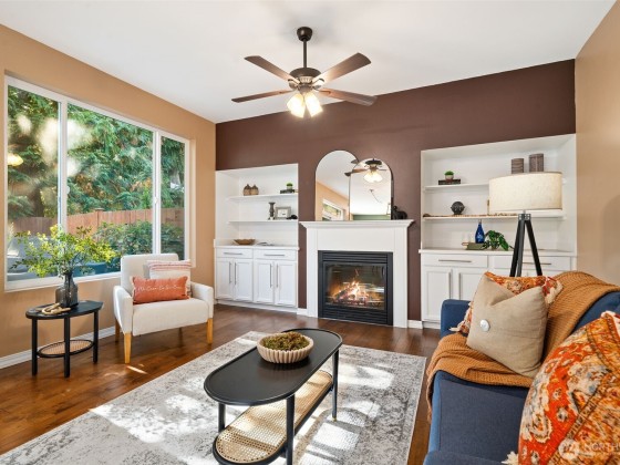 Welcome Home! Ideal central location in Poulsbo, close to shopping schools, restaurants and downtown Poulsbo. Here's the move in ready, affordable home that you've been waiting for! Welcoming front 2 story entry opens to a cozy sitting area, and down the hall to the great room. The island kitchen features white cabinetry, stainless appliances with plenty of counterspace and storage. Dining area between kitchen and living room opens to the private fenced back yard. You'll love hanging out the in living room with large picture window , gas fireplace and built ins for your media or art. Upstairs you'll find a flex space that would be a great office play area. Huge primary ensuite with soaking tub, shower & walk in closet. Come see it today!
