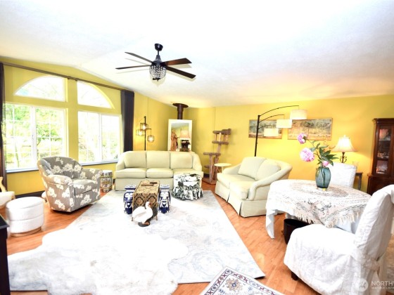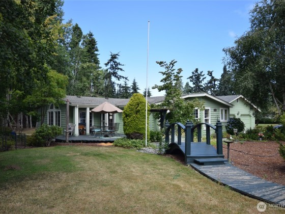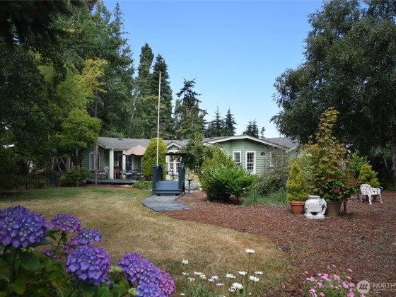 Gardeners dream come true. This property has incredible tranquil yard spaces, fruit orchard, picnic area, shed, large lawn area and much more. This beautiful home is a triple wide with 3 bedrooms, 2 baths & 1/2 bath. Breezeway to 1200 soft garage that holds 2 cars, workbenches & mower/cycle door. Attached is a finished shop that was a beauty shop & could be a business or amazing shop or sewing room or whatever you envision. This room has heat & a half bath.