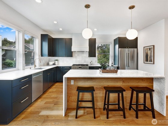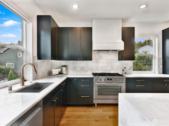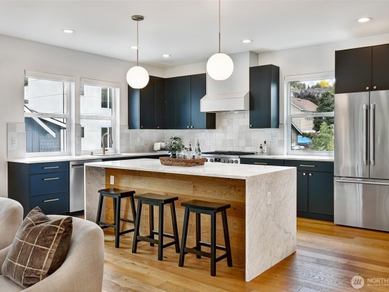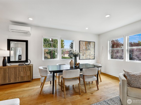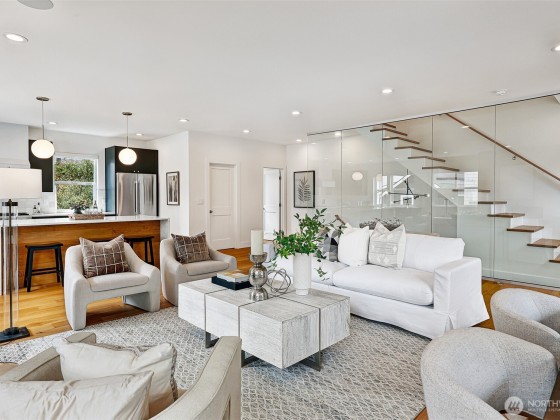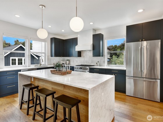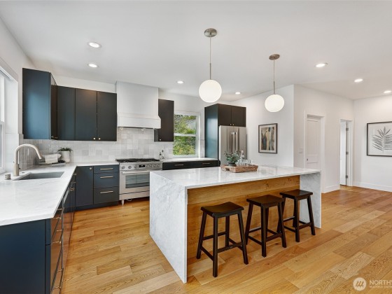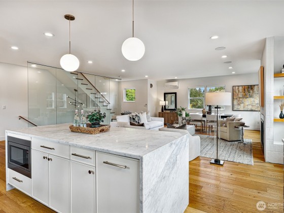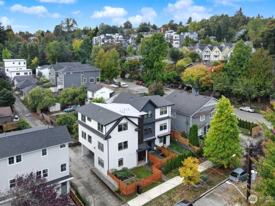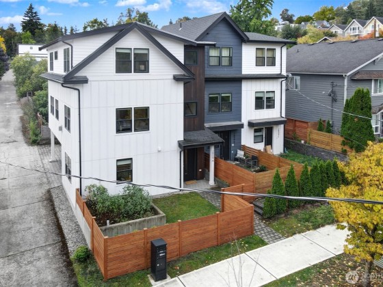 This is not your standard-issue Madrona townhouse. The thoughtful craftsmanship and layout give this space a traditional home feel. Expansive kitchen and living area is naturally bright, even when the city doesn’t offer full sun. Generous 4 bed/3.25 bath w/ 3rd floor luxury primary en suite and entry level guest suite. Premium materials and appliances add to the vibe w/ Carrara marble counter tops and hard wood floors. App-driven system upgrades including Z-Wave blinds and Hue lighting make this home “smart” w/ Cat6 wiring. Attached 2+ car garage for projects/additional storage w/ an Enel X Juicebox EV charger that conveys. Consciously built w/ a 4-star Green Built rating. Near Arboretum, Lake WA and a variety of upscale shops/restaurants.