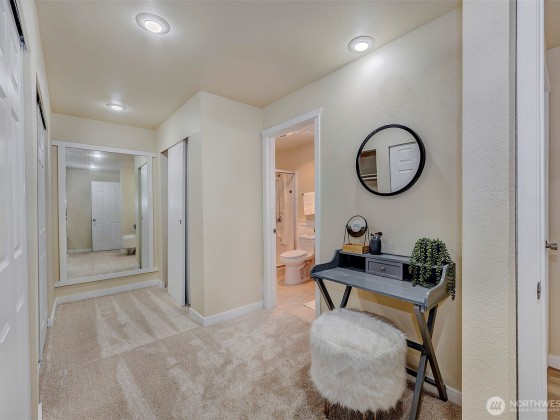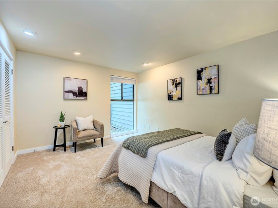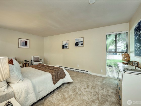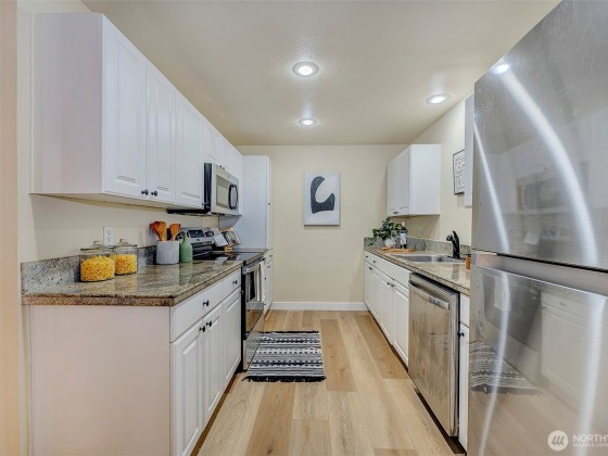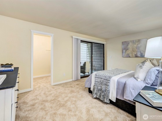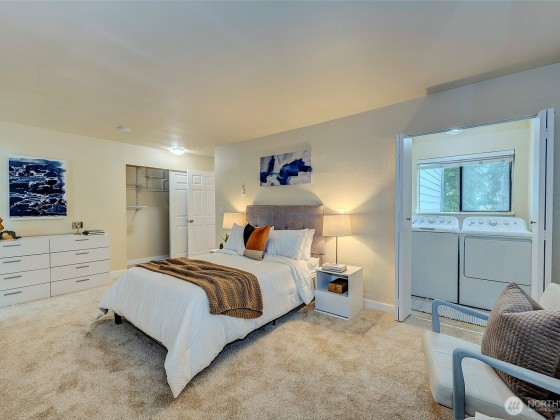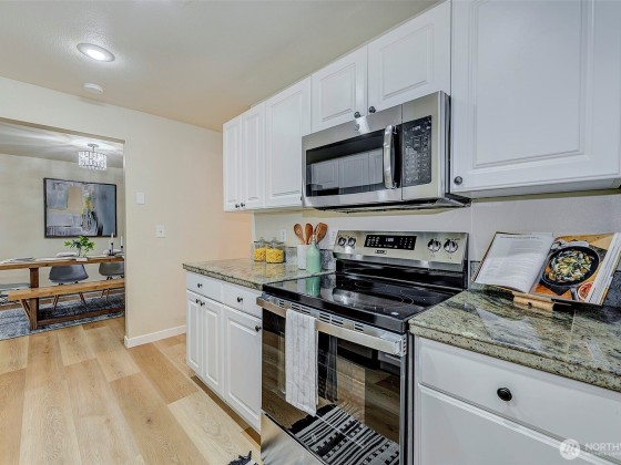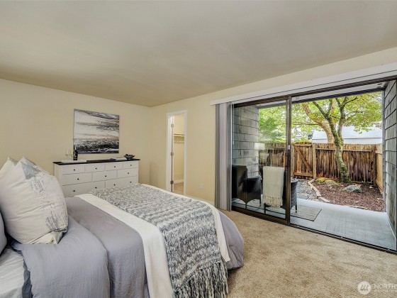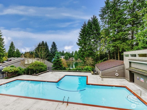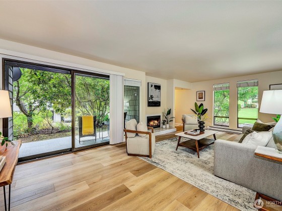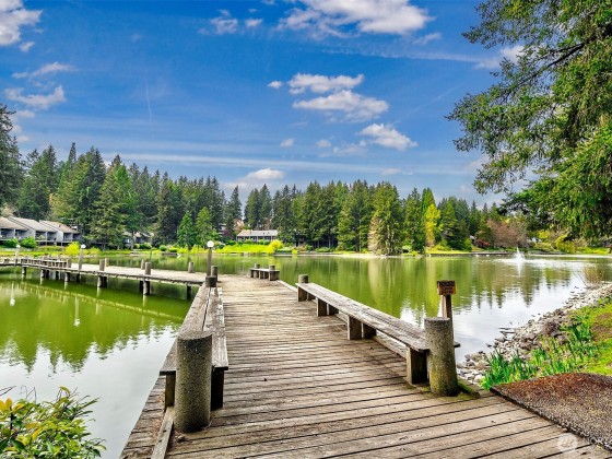 Spacious end-unit condo with elevator access and 3 private patios, lives like a single-family home! Remodeled kitchen and baths, freshly painted with new LVP flooring, new carpet, and stainless-steel appliances. Light-filled great room, 3 generous bedrooms + office space, and in-unit laundry with washer/dryer. Ground-level entry with yard space and resort-style amenities: 3 lakes, 4 pools, gym, tennis, pickleball, volleyball, and trails across 86 acres. Unbeatable location across from Bellevue Golf Course, near Bridle Trails Shopping Center, with easy access to I-405, 520, and Downtown Bellevue, Redmond & Kirkland. No rental cap. Onsite HOA office. 24/7 security.