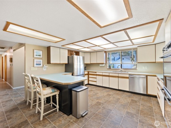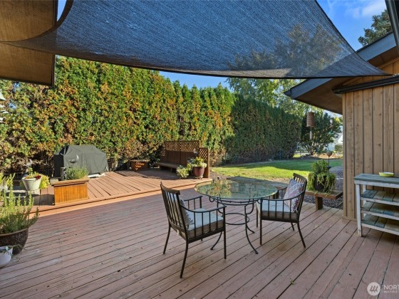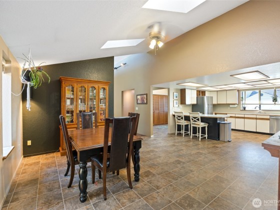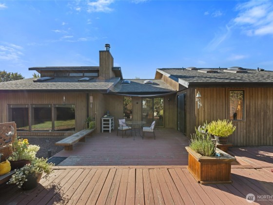 Unique 2,288 sq. ft. rambler on a corner lot in desirable Pelican Point. This home features 10 skylights, vaulted ceilings, and a sunken living room with clerestory windows and wood-burning fireplace. The large kitchen opens to the dining room, creating an ideal space for gatherings. Bedrooms are generously sized, including a primary suite with ¾ bath and walk-in closet, plus a spacious full guest bath. Step outside to a private multi-level wood deck, perfect for entertaining. Extras include underground sprinklers, RV parking, storage shed, and mature landscaping. A one-of-a-kind property filled with natural light and endless potential.