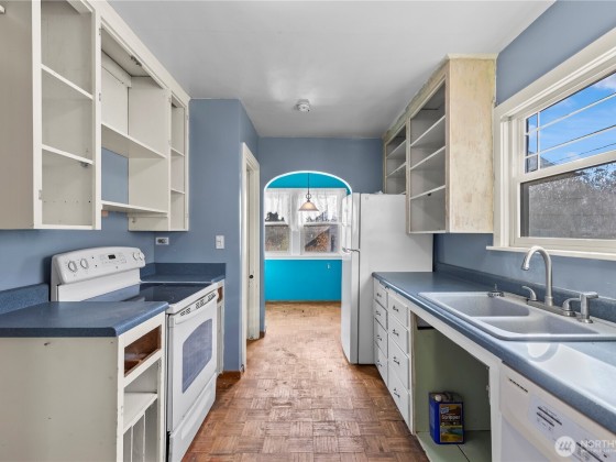 Great opportunity on a FIXER with tons of charm and potential! Look at the arched doorways, real wood floors, wood fireplace with traditional brick mantle and tile hearth. Coved ceilings with picture molding in living room and bedrooms, traditional millwork and trim, along with ceiling fans! All appliances stay, as-is, including front-loader laundry machines. Downstairs, the basement offers 3rd bedroom, lots of flex space, large laundry area, rec room that could be used as 4th bedroom (egress?) a 3/4 bath, ample storage, work shop area and access to 1 car garage. Priced well for the investor who's ready turn this into a charming home again.
