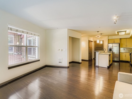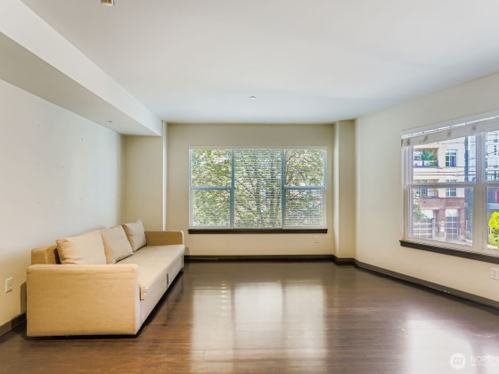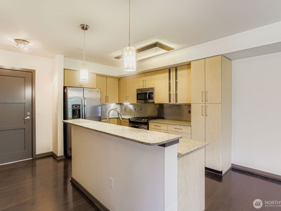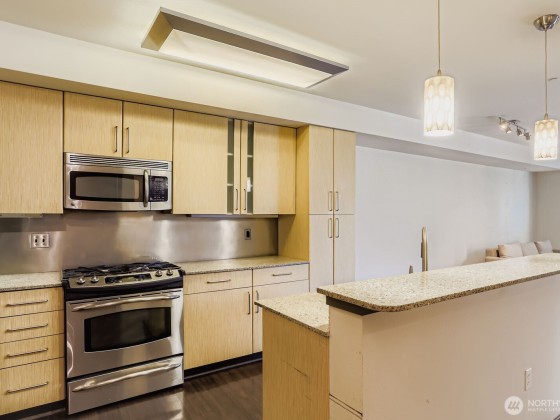 Experience luxury and convenience in this move-in ready condo located in the heart of Green Lake! Unit 207 features a functional, spacious kitchen with stainless steel appliances, gas stove, and breakfast bar—ideal for both cooking and entertaining. The open layout includes easy maintenance flooring, a bright living/dining area, in-unit washer/dryer, and generous storage throughout. The building offers secure entry, a community room, rooftop deck, and garage parking. Just steps to Green Lake, PCC, cafes, shops, and light rail—this location truly has it all. No rental cap and up to 2 pets allowed. Don’t wait—this one won’t last! Future update project fully funded.