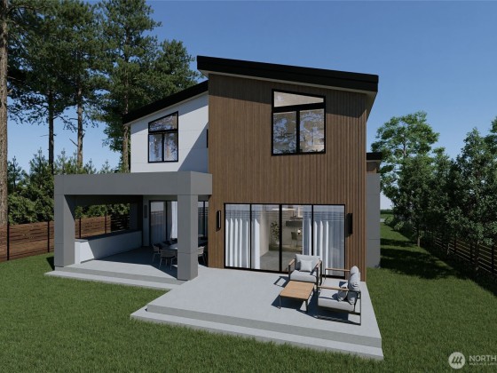 Modern New Build. Permits are in hand and construction has not started, unlock a rare chance to purchase land&build your custom home w/ a single mortgage. At closing, buyer takes title to the lot and signs a fixed-price construction agreement with the builder. No HOA. Main level built for entertaining: chef’s kitchen w/ oversized island + walk-in pantry opens to dining & great room with sliders to a covered outdoor patio. Main-floor guest suite (¾ bath) + office, mud room, powder, and 2-car garage. Upstairs: primary suite w/ dual WICs & spa bath, plus 3 more bedrooms, 2 baths, laundry & rec room. Finishes similar to renderings; buyers may personalize. Minutes to Log Boom Park, Burke-Gilman Trail, Juanita Beach & Saint Edward; Northshore SD.