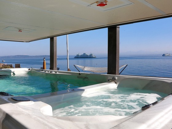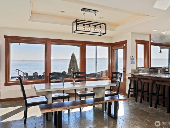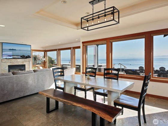 Immaculate waterfront living in Clinton! This beautifully maintained home offers sweeping views of the Cascades, Mt. Baker and the sparkling city lights from across the Sound. Private steps to the beach grant easy access to your mooring ball and vessel for premier crabbing and fishing. Enjoy the spacious concrete patio, perfect for entertaining guests and extremely easy to maintain. The open floor plan is filled with natural light and finished with quality details throughout. This 2-bedroom home offers 3 sleeping areas for larger gatherings. Relax in the 2-in-1 swim spa/hot tub while soaking up the panoramic vistas. Just minutes from the Clinton ferry for a quick commute, and proven short-term rental history adds investment potential.