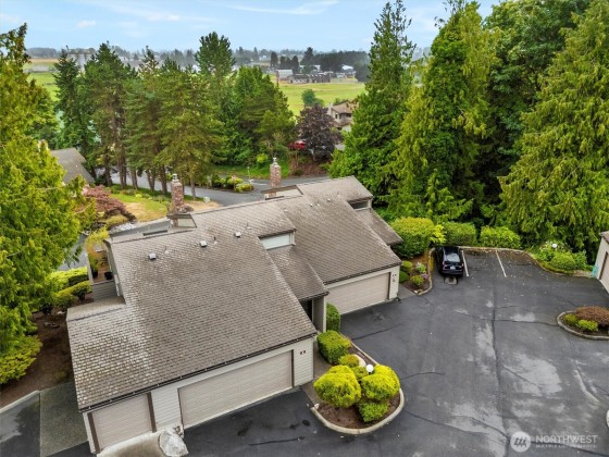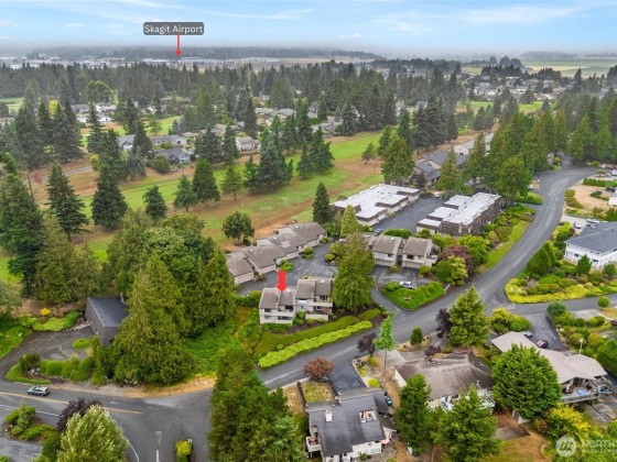 Peaceful Oasis next to Skagit Golf & Country Club! Desirable end-unit townhome style condo w/ flowing layout. Recently updated kitchen, living room & flooring. Open layout features vaulted ceilings, cozy gas fireplace & dining area that connects to a private deck, perfect for morning coffee or evening relaxing. The kitchen has plenty of cabinet & pantry space & designed for easy cooking & entertaining. Primary suite includes 3/4 bath, walk-in closet & private patio access. Lower level also includes a second bedroom, full bath & laundry area. A two-car garage with a newer door adds convenience. This quiet golf course community offers a low-maintenance lifestyle close to the clubhouse, five mins to I5 & seven mins to Burlington shopping!