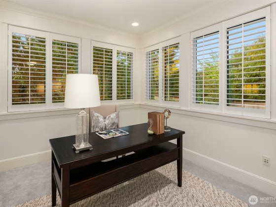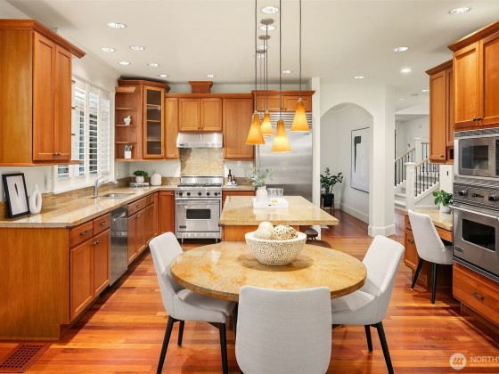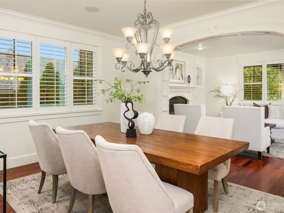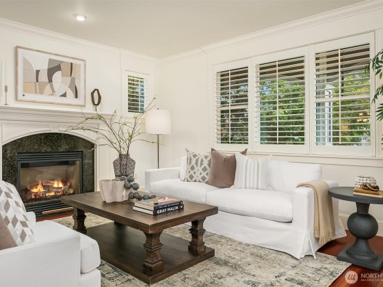 Beautifully maintained home in the sought-after Laurelhurst community. Built in 2006, this classic residence features hardwood floors, custom molding, arched doorways, & soaring ceilings throughout. The main level includes a bedroom/office, powder bath, formal dining & living areas, plus a spacious kitchen & family room with stone-surround fireplace & bar-style counter seating. Upstairs offers two bedrooms, laundry, a secondary bath, & a generous primary suite with private office space, walk-in closet, soaking tub, oversized shower, & double vanity. The sunny backyard boasts a patio, built-in BBQ area, grass, new fencing, & vibrant gardens. Oversized two-car garage provides ample space for parking, storage, & workouts.