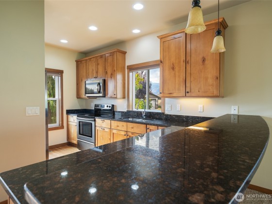 Beautifully designed 3 bed, 1.75 bath home with 1,605 sq ft of comfort and style in the heart of Manson. Hardwood floors lead you to the gourmet kitchen featuring custom cabinets, granite countertops, and stainless steel appliances. The great room with riverwalk fireplace and sliders to a covered patio creates seamless indoor-outdoor living. The primary suite offers a spacious walk-in shower, dual sinks, granite counters, and a large walk-in closet. Enjoy privacy and views—this homesite borders a peaceful neighborhood park in the gated community of The Village. Located just a quick stroll from neighborhood pool and ten-minute walk to vibrant downtown Manson.