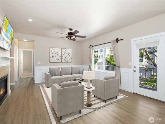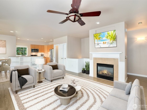 Welcome home to this beautifully updated 2-bed, 2-bath condo filled with natural light & charm. The inviting living area features a cozy fireplace, crown molding, built-ins, & exceptional craftsmanship throughout. The lovely gourmet kitchen is perfect for everyday cooking or entertaining, while the spacious primary suite offers a walk-in closet & en-suite. Freshly painted and cleaned, this home is move-in ready & includes a 1-year home warranty for peace of mind. Enjoy the deck, 1-car attached garage, & community amenities—clubhouse, gym, athletic court, & playground. HOA covers water, sewer, lawn, & road/snow maintenance. Conveniently located near Hwy 167, 405, & Valley Medical. Mortgage savings may be available for buyers of this listing.