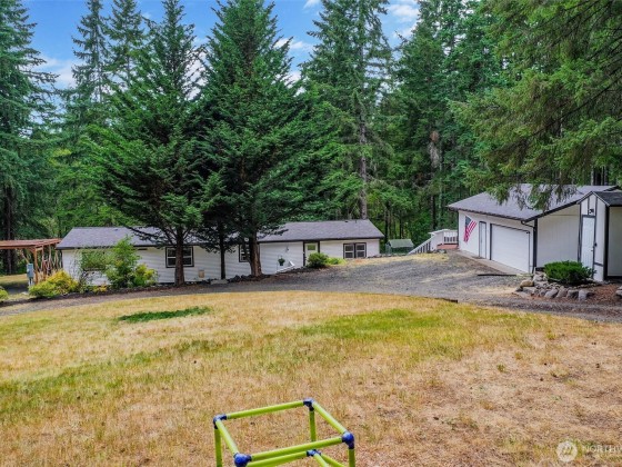 Affordable home in the middle of Million $$ homes, features 5 beds (2 being Primary suites) 3 baths, Additional room in shop. Perfect for multi-generational living. Primary suite with 5-piece bath, fully tiled walk-in shower, a freestanding soaking tub, double vanity, and a massive walk-in closet. TONS of updates! Waterproof laminate flooring throughout, LED lighting in every room, HUGE kitchen w/ quartz countertops, stainless appls, generous cabinetry & counter space. 266 sq ft sunroom—perfect as a lounge, office or workout area. new roof + warranty, 864sqft 2car garage/shop w/ work @home office, plus double car carport and RV parking w/plug in, 3yr old heat pump, garage deck wired for hottub. Private trails to salmon stream. LARGE LOT!!