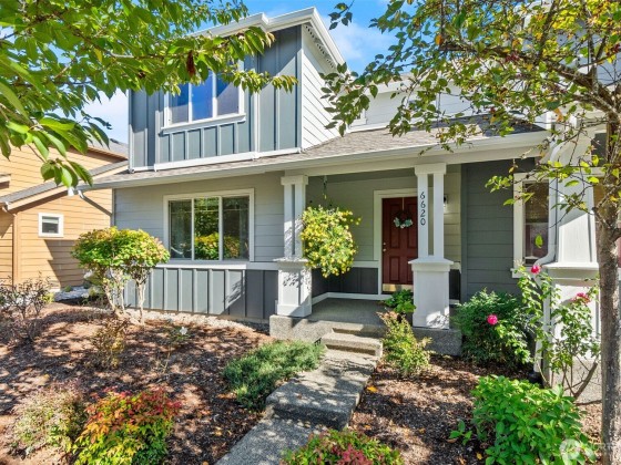 Welcome to this charming 2-bedroom, 2.5-bath townhouse in the desirable Horizon Pointe neighborhood! Built in 2008 & freshly updated with new exterior paint, a new garage door, & A/C on the main floor, this 1,342 sqft home is ready for its new owner! The main level offers an open-concept layout with a large island eating bar, maple cabinets with crown molding, laminate flooring throughout the dining + living room, & a half bath. Upstairs features two spacious primary suites, each with its own full bath, plus a laundry room. Enjoy a low-maintenance front & fully fenced backyard, a one-car garage, & multiple parking options. Located near North Thurston Public Schools, Chehalis Western Trail, 5 Parks, shopping, dining, I-5, JBLM, & golf!