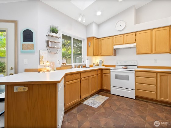 Come See This Beautiful 3-Bed, 2.5-Bath Home – 2,040 Sq Ft on a Prime Corner Lot! This light-filled home features vaulted ceilings and skylights, creating a bright and airy atmosphere. Step into the welcoming hardwood floor entry and enjoy the spacious kitchen with classic oak cabinets—perfect for cooking and entertaining. This home offers many areas to relax in, from the large living and dining rooms to the large family room which offers a cozy gas fireplace, ideal for relaxing evenings. The primary suite includes double closets and a full private bath for your comfort. Located on a desirable corner lot, this home borders a peaceful park and offers both privacy and convenience. Don't miss your chance to make this one yours!