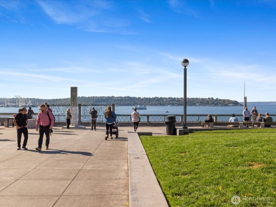 Live at Pike Place Market in this updated 2-bed, 1.5-bath Market Place North townhome. The main floor features hardwoods, a wood-burning fireplace, built-in bench & an updated kitchen with induction cooktop, quartz counters, and pantry. Upstairs, the primary suite offers a walk-in closet with custom shoe wall and a spa-like bath with dual vanities, rain shower, and Japanese Ofuro tub. The second bedroom doubles as a media room with a clever built-in “cloffice” (office in a closet). A private balcony overlooks Pike Place Market, Victor Steinbrueck Park & Elliott Bay, while upstairs adds stadium and mountain views. This rare retreat includes secure parking & storage, and is just steps from the new Market Walk and all the energy of Pike Place.