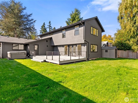 Stunning must-see home featuring RV parking,500 sq ft Trex deck w/8-person hot tub,&fully fenced yard.Main level offers vaulted ceilings,updated kitchen w/quartz countertops,full tile backsplash,custom cabinets,&SS appliances.2 bedrooms on main floor,custom utility room w/dog wash station,&tankless water heater.Spacious family room opens to large deck perfect for entertaining.Upper level features oversized primary suite w/custom tile work,walk-in shower,plus additional bedroom & guest bath.Front yard highlights a rare Japanese Maple tree,&property includes 8x18 storage shed.Conveniently located near light rail station,shopping,beaches,&parks.Move-in ready w/thoughtful upgrades throughout - this home combines modern comfort,functionality.