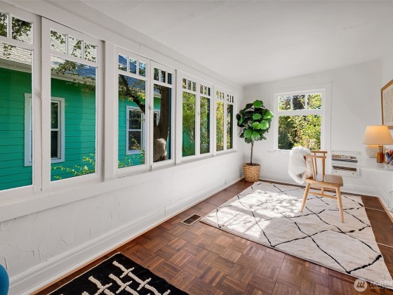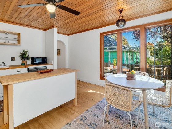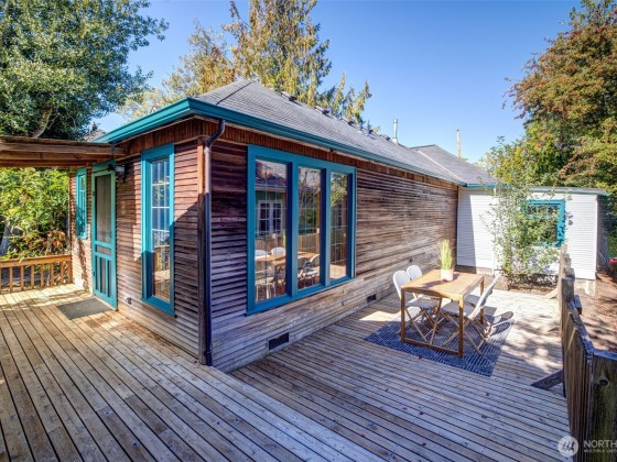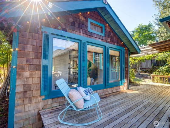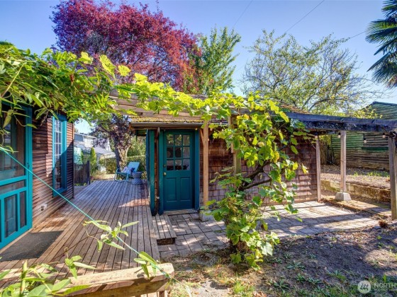 A truly charming Hillman City/Seward Park home features rich wood floors throughout main rooms and a spacious kitchen with dining area overlooking a large deck and private backyard. One bedroom offers a walk-in closet, while the other is uniquely surrounded by windows. The expansive deck with patio are perfect for entertaining. A detached studio with wood floors and electricity invites creativity, along with two additional buildings for use as an art space and a tool shed. Set on a lush, private lot with mature fruit trees and walking distance to Lake Washington, Seward Park, Hillman and Columbia City, as well as 50th Ave S shops. A truly captivating and versatile home is awaiting your personal touch!