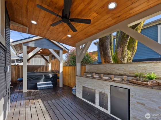 Classic Wallingford Craftsman meets modern living! Updated with a sleek new kitchen, refreshed baths, stylish lighting, fresh paint, and central AC. A detached garage plus private studio offers endless possibilities such as a home office, gym, or future DADU. The lower level is ready for a MIL suite or rental with utilities in place. Outdoors, enjoy a Jacuzzi spa, covered deck with privacy shades, built-in grill, and turf putting green, an entertainer’s dream! Just minutes to Green Lake, Fremont, and Gas Works Park, plus neighborhood cafés, shopping, and top-rated schools. This home blends timeless charm, modern upgrades, and an unbeatable location, offering a lifestyle that is truly one of a kind.