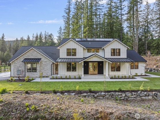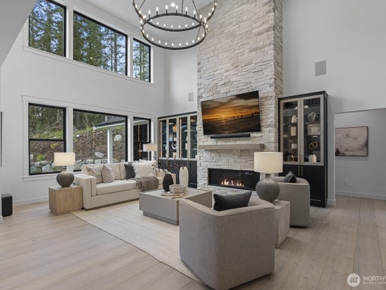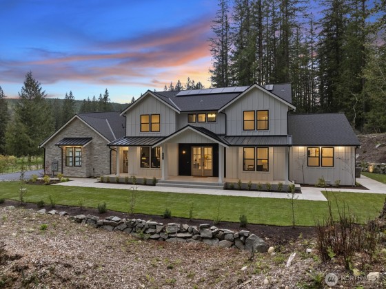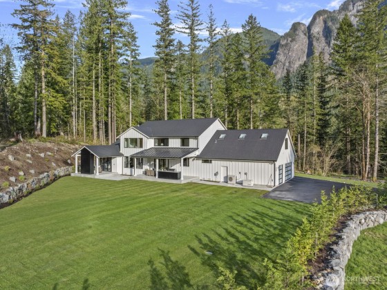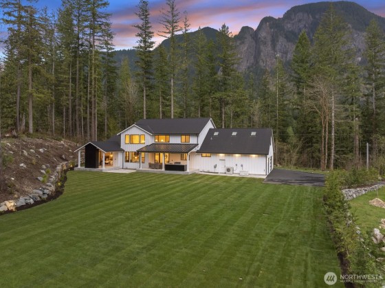 On a shy acre along iconic North Fork Rd, this like-new luxury home offers sweeping views of Mt Si. The open layout is perfect for both quiet nights & entertaining. A dramatic two-story great room centers around a fireplace with custom built-ins. Sophisticated lounge & office. The chef’s kitchen shines with high-end appliances, quartz counters, & dual islands. Enjoy year-round outdoor living with covered patios, grill, & fireplace. Main-level primary suite includes a magazine-worthy spa-inspired bath. Upstairs features en-suite bedrooms, walk-ins, & a large bonus room. Rich hardwoods, designer lighting, & detailed millwork throughout. No detail overlooked. Pre-inspected. Prized schools. No HOA. This is the one you've been waiting for!