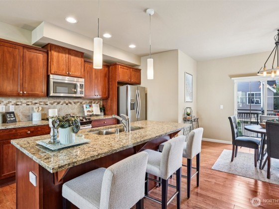 Discover the best of West Highlands Park in Issaquah Highlands, a premier community close to parks, trails, restaurants, Park & Ride, theater & so much more. This spacious townhome features large windows that provide warm natural light. The main level features a great room w/hardwood floors, gas fireplace, open concept kitchen & SS appliances. Upstairs leads you to 2 bedrooms, including the primary suite that has vaulted ceilings & a spacious ensuite bath w/duel vanities & w/in shower & walk-in closet. The top floor boasts an amazing guest suite/flex space that can be used as a bedroom, playroom or office, plus full bath. Garage is two bay. Low HOA dues. No Rental Cap. Award winning Issaquah schools, this is one home you don't want to miss.