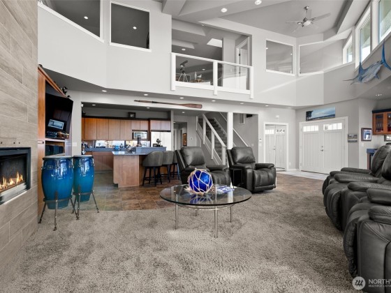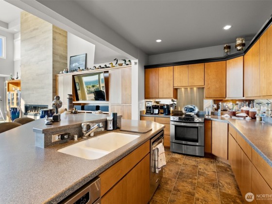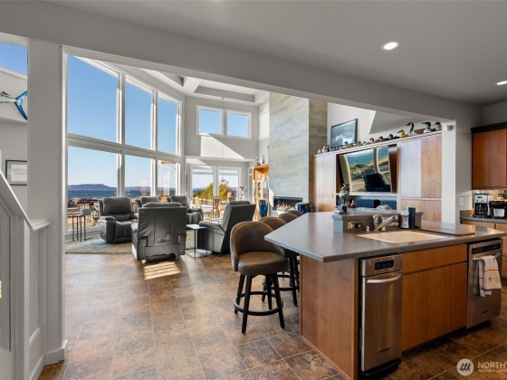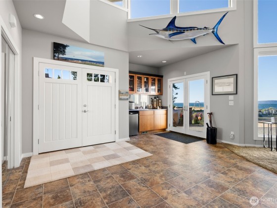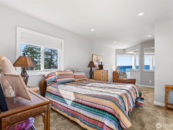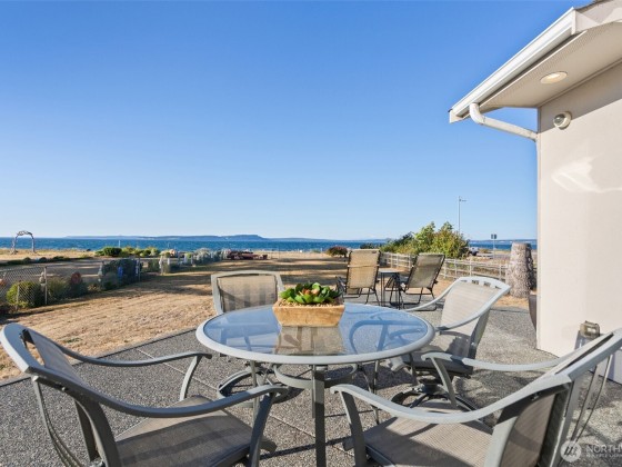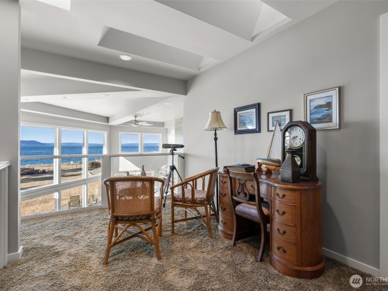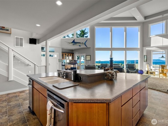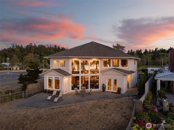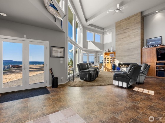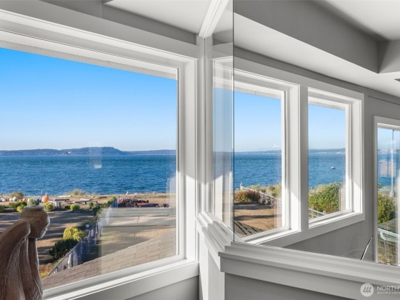 Beachcomber’s paradise just steps from PointNoPoint Lighthouse. This 3134 sqft beachfront home offers front-row Puget Sound living with unforgettable views from nearly every room. Wildlife, passing ships & glowing sunsets frame daily life, while an open-concept floor plan unites the kitchen, dining & great room- featuring cherry cabinetry, vaulted ceilings & stunning floor-to-ceiling tiled fireplace. French doors open to a patio with direct beach access just beyond the fenced yard. The main-floor primary suite features a 5-piece bath, walk-in closet & fireplace. Upstairs, 2 ensuite bedrooms & office provide private retreats. For ease, A breezeway connected 2 car garage. Launch your kayak, fish from shore, walk the beach- enjoy Hansville!