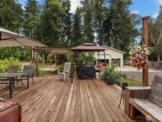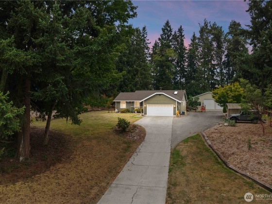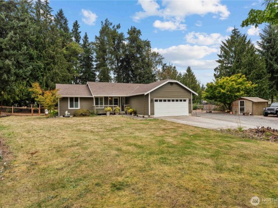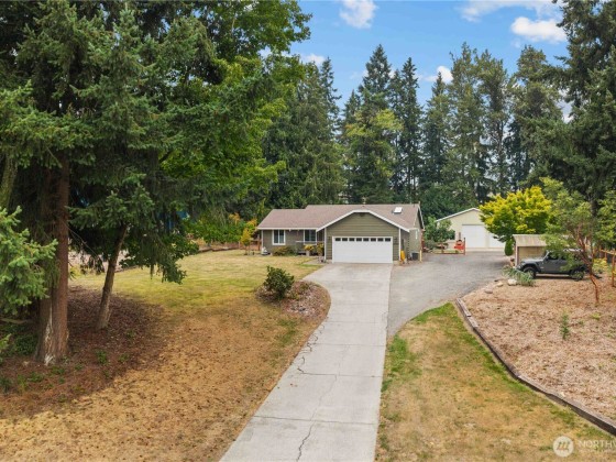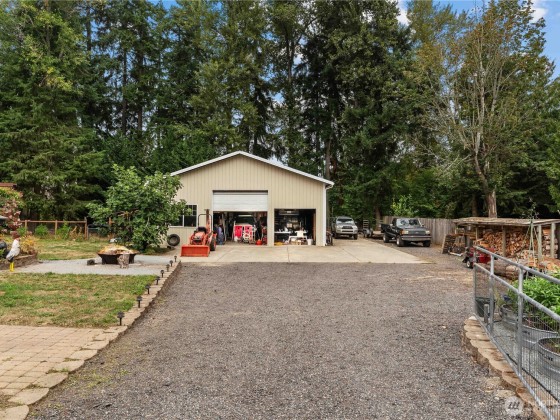 3/2 RAMBLER on NEARLY AN ACRE w/1440 sqft SHOP! This amazing property has everything you've been looking for & more! Backing to a greenbelt, BL HS is behind the house. Private & Quiet Neighborhood of Homes that rarely hit the Market due to their lot sizes & location. Updates that you need including White Kitchen Cabinets w/Quartz Counters & Subway Tile Backsplash, S/S & Black Appliances, Laminate Floors & Updated Bathrooms. Roof is approx 7 years old. Exterior Paint 6/2024. Primary Bdrm w/En Suite Bath + Walk-In Closet. Huge Back Deck, Paver Patio, Firepit, Designated Garden Space, Fruit Trees, Blueberries, Flowers, Goat/Dog Run & RV Parking & Hookup. Create your own Mini-Farm & relax knowing that you're close to whatever you need!