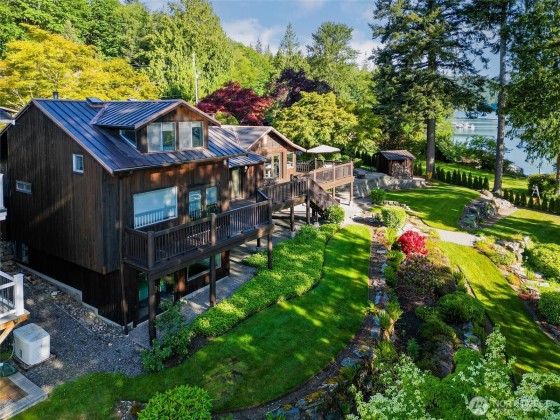 Attractive Owner Financing offered. Exceptional double-lot (486 & 488 W Lake Samish) estate with 150' of Lake Samish waterfront and rare abundant parking for 8-15 vehicles. Well repaired and maintained home offering panoramic lake views and a blend of indoor comfort and outdoor splendor for year-round lakeside living. The primary lot features a well-maintained 4,600 SF home with 3+ bedrooms with loft and den w/ closet, 3.25 baths, large 2,000 SF platform deck, dock and firepit. Additional lot offers detached garage, garden, firewood shed and modernized waterfront boat house. Professionally landscaped grounds with irrigation system enhance natural beauty. Covered entries throughout.