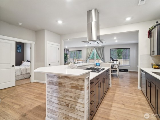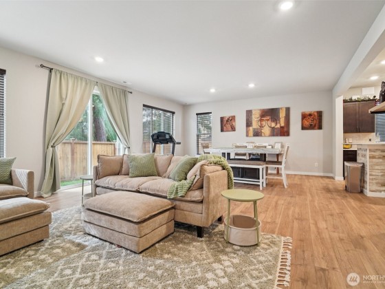 Discover the livability of Rainier Ridge! Enjoy sweeping views, community walking trails, and two neighborhood parks. The spacious Lexington floor plan offers generous living space w/ welcoming Great Room, formal Dining Room, & Gourmet Kitchen featuring large island w/ gas range, hood vent, quartz counters, stainless steel appliances, & undermount sink—perfect for the home chef. Versatile den/bedroom with an adjacent ¾ bath is conveniently located on the main floor. Upstairs, the primary suite impresses w/ dual walk-in closets & spa-inspired 5-piece bath. 3 additional bedrooms + large bonus room—currently used as media room—offer plenty of flexibility. Come see why Rainier Ridge is one of the area’s most desirable communities!
