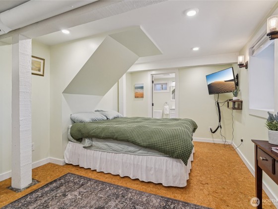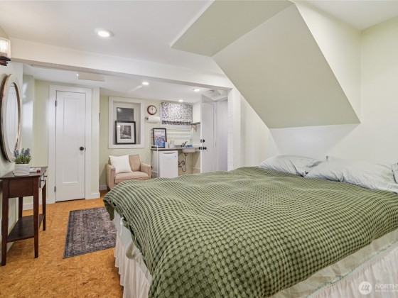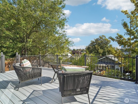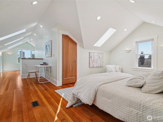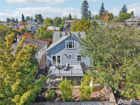 Wallingford charm and thoughtful updates shine in this beautifully maintained home. Original leaded glass, a welcoming front porch, and refinished hardwoods set the tone in this light-filled, notably quiet space given its central location. The spacious living and dining rooms connect to a bright kitchen with stainless appliances, tile backsplash, and French doors to the Trex deck. Two main-floor bedrooms share a full bath. Upstairs, the skylit primary suite includes a walk-through closet and private 4-piece relaxing bath. The lower level offers a cozy media room, laundry, and loads of storage. Permitted Airbnb studio with its own entrance will subsidize your lifestyle. New sewer line with warranty. This is the home you’ve been waiting for.