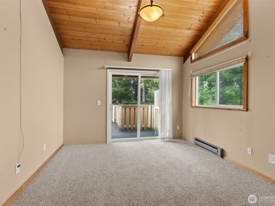 Fresh new carpet and a spacious double lot set the stage for this Westport home with 4 bedrooms, across nearly 2,000 sq ft. Main level offers a living room w/wood stove and built-ins, open dining area, & kitchen with SS appliances. Upstairs, a landing with wet bar and 2 bedrooms both with deck access via sliding doors, & vaulted ceilings, one with ensuite & the other w/a designated bath. Updates include ductless mini-splits, most windows, garage doors, propane tank, and portable generator. Two car garage & shed for storage. Level, 14,000sqft double corner lot provides space for gardening, entertaining, and potential development. Just minutes from the beach, shops, and restaurants - ideal as a primary home, getaway, or short-term rental.