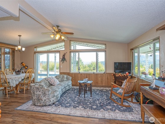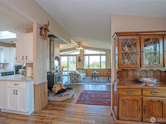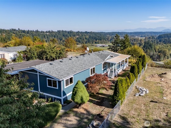Discover wide-open outdoor space, and breathtaking MT RAINIER VIEWS in this immaculate 2-bedroom, 1.75-bath home. Sunlight fills every room, highlighting the spacious layout and inviting atmosphere. The modern kitchen boasts gorgeous cabinetry and sleek SS appliances. The huge primary bedroom offers room for a cozy sitting area, and is complimented by an ensuite bath. Take in the breathtaking surroundings right from your living spaces! Generous carport featuring a powered shop and RV plug-in. Inside showcases thoughtful updates including vinyl windows, and easy-care laminate flooring. Step out your front or back door to soak in the gorgeous mountain scenery—this is the perfect home for those who love beauty and space all around them!