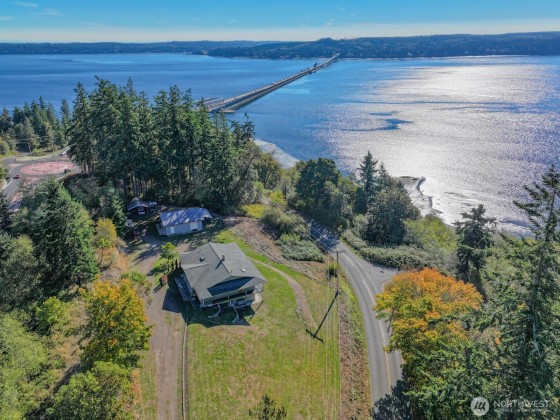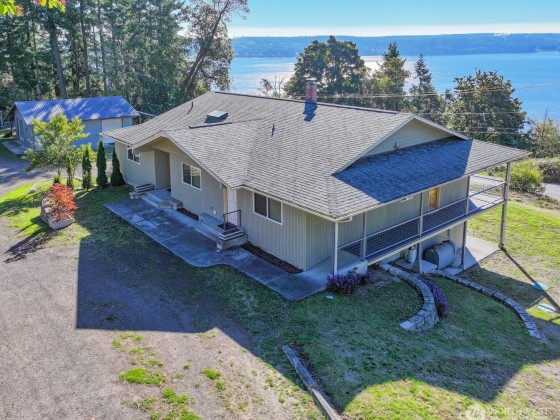 Enjoy Hood Canal views from this beautifully designed 3-bedroom, 2,926 sq ft home that is nestled on 1.20 acres of property. The open and bright kitchen is complete with all appliances, and it flows effortlessly into the dining and living area, all showcasing beautiful water views. Downstairs offers a flexible space with water views—ideal for a home office, bonus room, or creative studio. A spacious attached 2-car garage is complemented by multiple carports and a 30' x 36' (1,080 sq ft) shop/garage equipped w/power, 220 service, & a work pit—perfect for hobbyists or vehicle enthusiasts. A couple minutes to Hwy 104 and the Hood Canal Bridge. There's room for gardening, BBQ's or simply soaking in the view, in the beautiful Pacific Northwest!