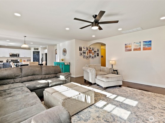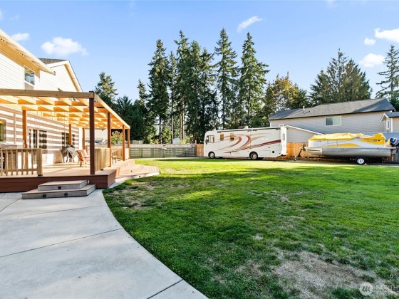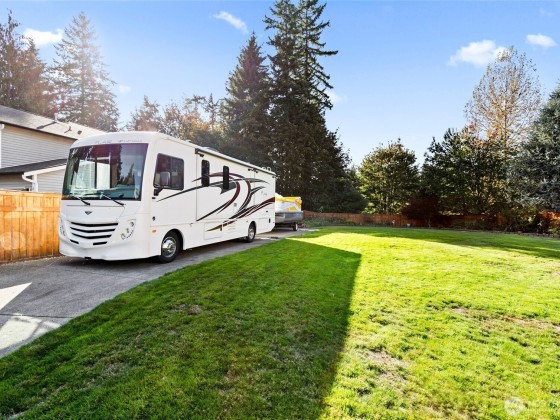 Welcome home to this beautifully maintained 3,000 plus sq ft home on spacious .35 acre Property with RV parking and 50 amp shore power. Fully fenced back yard with a coved trex deck for year around entertaining. Inside you will find Four ample bedrooms plus an office on the main floor. The open concept living area showcases a cozy fireplace with floating shelves and flows seamlessly into the Kitchen with island, walk in pantry. Primary suite with Sitting/Library space and 5 piece bath. Huge Bonus room upstairs and three more bedrooms. 3 car garage and A/C and in ground sprinkler!
